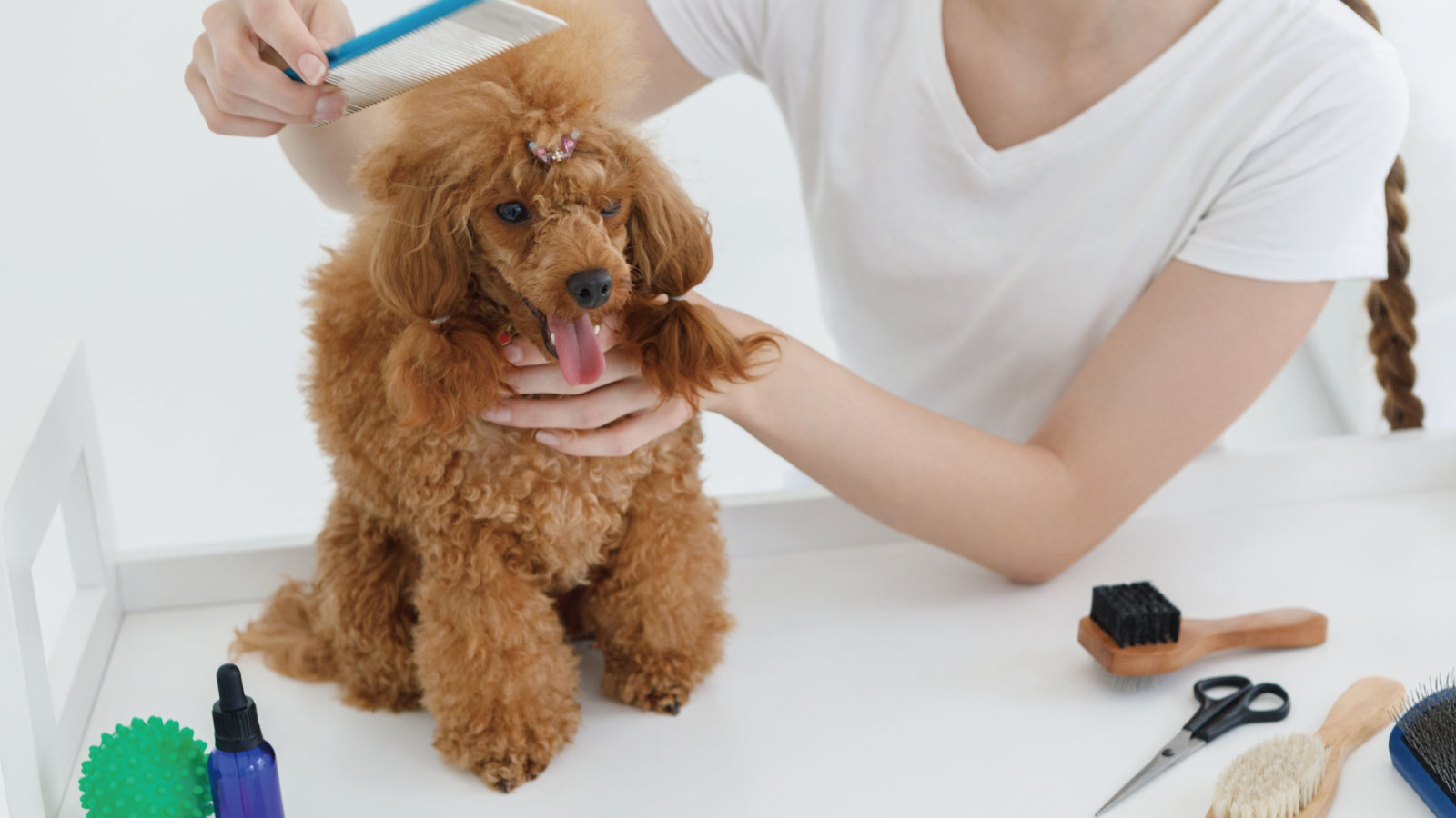 この日はNPCの担当犬と一緒に被毛ケアの基本を学びます。